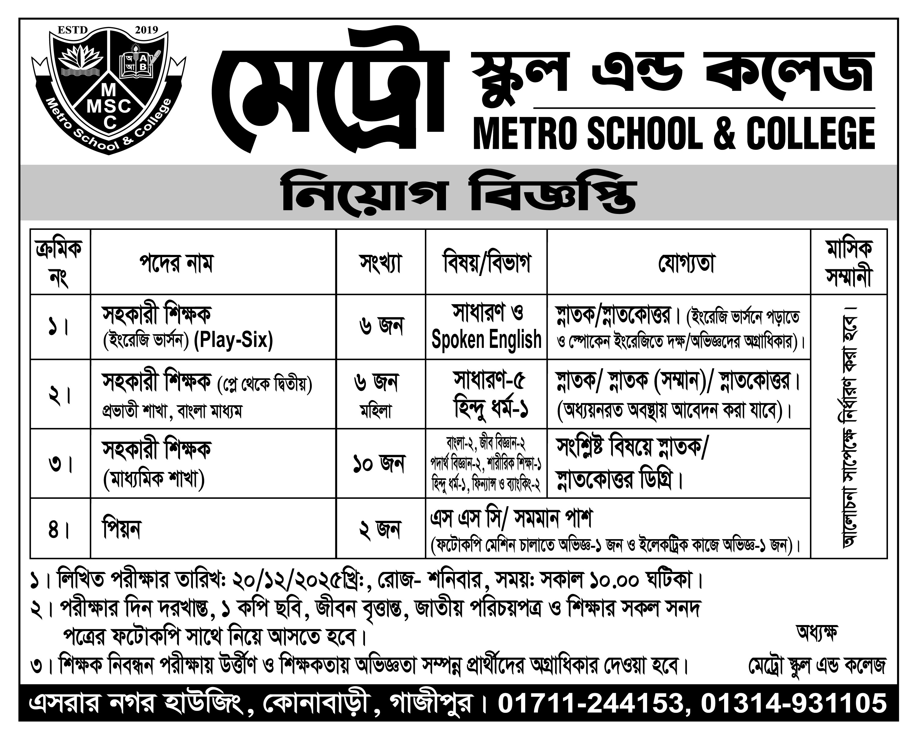 নিয়োগ বিজ্ঞপ্তি